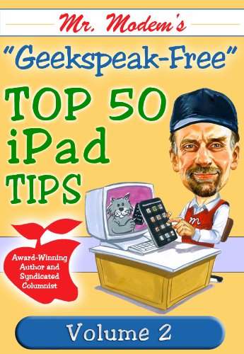 Nationally syndicated columnist, multiple-book author, and publisher of the almost-but-not-quite legendary Mr. Modem's Weekly Computer-Help Newsletter (www.MrModem.com), not to mention (but we will anyway) Mr. Modem's Top 50 Computing Tips five-ebook series (www.amazon.com/dp/B005FR7IOY), Mr. Modem is back with another hot-off-the tablet, 50 incredible iPad tips volume in this three-volume trilogy. (And what better trilogy to have than a three-volume trilogy?)In Volume 2 you will learn how to use your iPad's integrated light meter for better photos; how to move photos from your iPad to your computer; use the Map App in Street view; how to open links on a new page, how to expand your email preview, backup your iData, what to do if your screen won't rotate -- Eek!; how to share podcasts, swap search engines, use the Zoom Accessibility Mode, how to sync your bookmarks, improve your iPad's security, and much more.